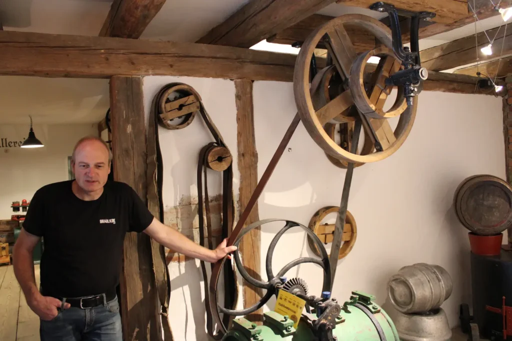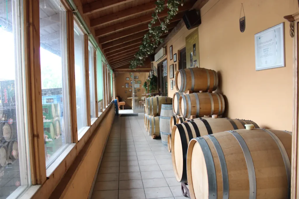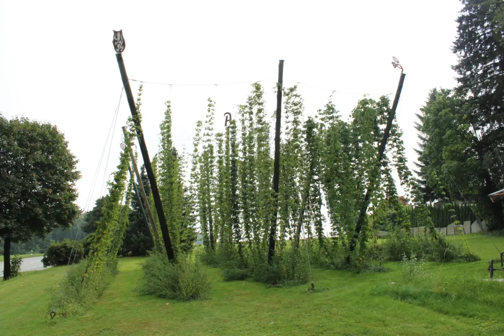 An einem Samstagvormittag fahren wir in das niederbayerische Hauzenberg, nahe Passau und unweit der Grenze zu Österreich. Gut gelaunt und mit viel Vorfreude treffen wir bei der Brauerei ein, dort nimmt Rudi uns direkt in Empfang. Nach einem kurzen Plausch geht’s dann auch schon mit einer Tour durch die Brauerei los. Und schnell wird klar, Rudi macht hier nicht einfach nur Bier, er lebt es, mit jeder Faser! Direkt neben der Brauerei hat er einen kleinen Hopfengarten angepflanzt, ein Stück Hallertau in Hauzenberg! In Holzfässern reifen Biere zu einem exquisiten Geschmackserlebnis heran während in anderen Behältern Bieressig angesetzt wird. Ein Biermuseum erzählt die Geschichte des Gerstensaftes und die von Apostelbräu. So viele Eindrücke müssen wir erstmal verarbeiten. Prädestiniert dafür ist die eigene Brauereigastro, Brauliebe Hirz! Dort lassen wir uns auf ein Kaltgetränk nieder und quatschen mit Rudi über seine Geschichte und die der Brauerei.
