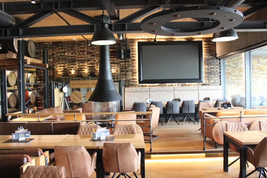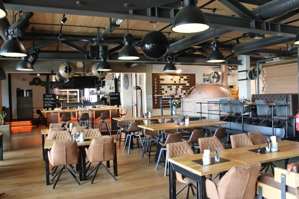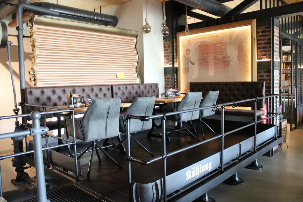 Wer heutzutage in der Brauerei einkehrt, darf sich über ein topmodernes Gastrokonzept freuen. Industrial Chic vereint sich mit Bayerischer Gemütlichkeit. Viel Holz, viel Metall und die Bayerische Bierseele mittendrin. Es gibt einen Sudkessel in dessen Inneren sich stilvoll dinieren lässt, alternativ kann man sich auch in das Kühlschiff setzen und dort seinen Gerstensaft genießen. Die Karte gibt das komplette Biersortiment vom Apostelbräu her. Dazu gibt’s Pizza und Burger. Ein Konzept das sehr nah an die US-Taprooms angelehnt ist und dennoch viele Elemente aus der traditionsreichen bayerischen Biergeschichte erhält.