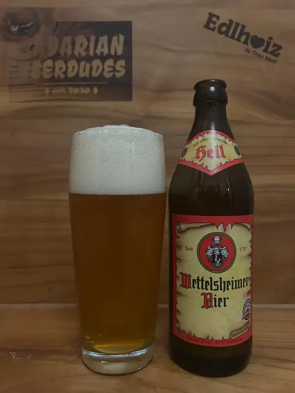 Am heutigen Tage, verschlägt es uns nach Mittelfranken! Bei der hier ansässigen Brauerei Strauß wird unter anderem das Wettelsheimer Bier Hell gebraut. Welches wir heute unter die Lupe nehmen. Im Willybecher präsentiert es sich uns in einem herrlich goldgelb leuchtenden Farbton und mit einer deutlichen Trübung. Gekrönt wird es von einer prächtigen, feinporigen bis cremigen uns schneeweißen Schaumkrone. Schon während des Einschenkens vernehmen wir hellmalzige, leicht süßliche Noten und hopfige, kräuterige Akzente, welche sich harmonisch miteinander vereinen.