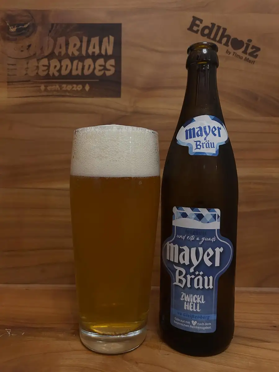 In der wunderbaren Oberpfalz im Örtchen Gleißenberg beim Mayer Bräu, wird ein Zwickl Hell eingebraut. Dieses werden wir uns heute in unsere Willybecher gießen! Im Glas präsentiert sich uns ein herrlich hefetrübes und goldgelb leuchtendes Zwickl. Gekrönt wird es von einer prächtigen, feinporig bis cremigen und minimal beigen Schaumkrone. In der Nase dominieren malzig, getreidige Noten. Dazu gesellen sich leicht grasige und hefige Aromen.