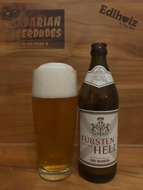 Wir sind heute im schwäbischen Landkreis Donau-Ries, in Wallerstein, hier ist das Fürst Wallerstein Brauhaus zuhause. Hier braut die Fürstenfamilie mit Ihrem Team unteranderem das Fürsten Hell! Im Willybecher präsentiert es sich uns minimal trüb und in einem leuchtenden Strohgold. Gekrönt wird es im wahrsten Sinne des Wortes von einer außerordentlich prächtigen, cremigen, langlebigen und schneeweißen Schaumkrone.