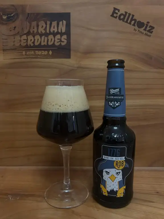 Wir bleiben mal wieder zuhause in unserer herrlichen Oberpfalz! In unseren Teku-Pokal fließt heute passend zur Jahreszeit ein etwas Stärkerer Stoff. Die Familie Prössl vom Rhanerbräu serviert uns Ihren 1776 ROB! Ein OAK-AGED BOCK mit 7,0 % Alkohol. Das holzfassgereifte Bockbier präsentiert sich uns in einem tiefen Bernstein mit leicht rötlich leuchtenden Reflexen. Bedeckt wird es von einer prächtigen, feinporigen und herrlich beigen Schaumblume. In unsere Nase schießt bereits beim Einschenken eine wahre Aromenvielfalt: Karamell, Toffee, dunkle Brotkruste treffen auf deutliche Holznoten wie Eichenholz, Vanille und feine Röstaromen.
