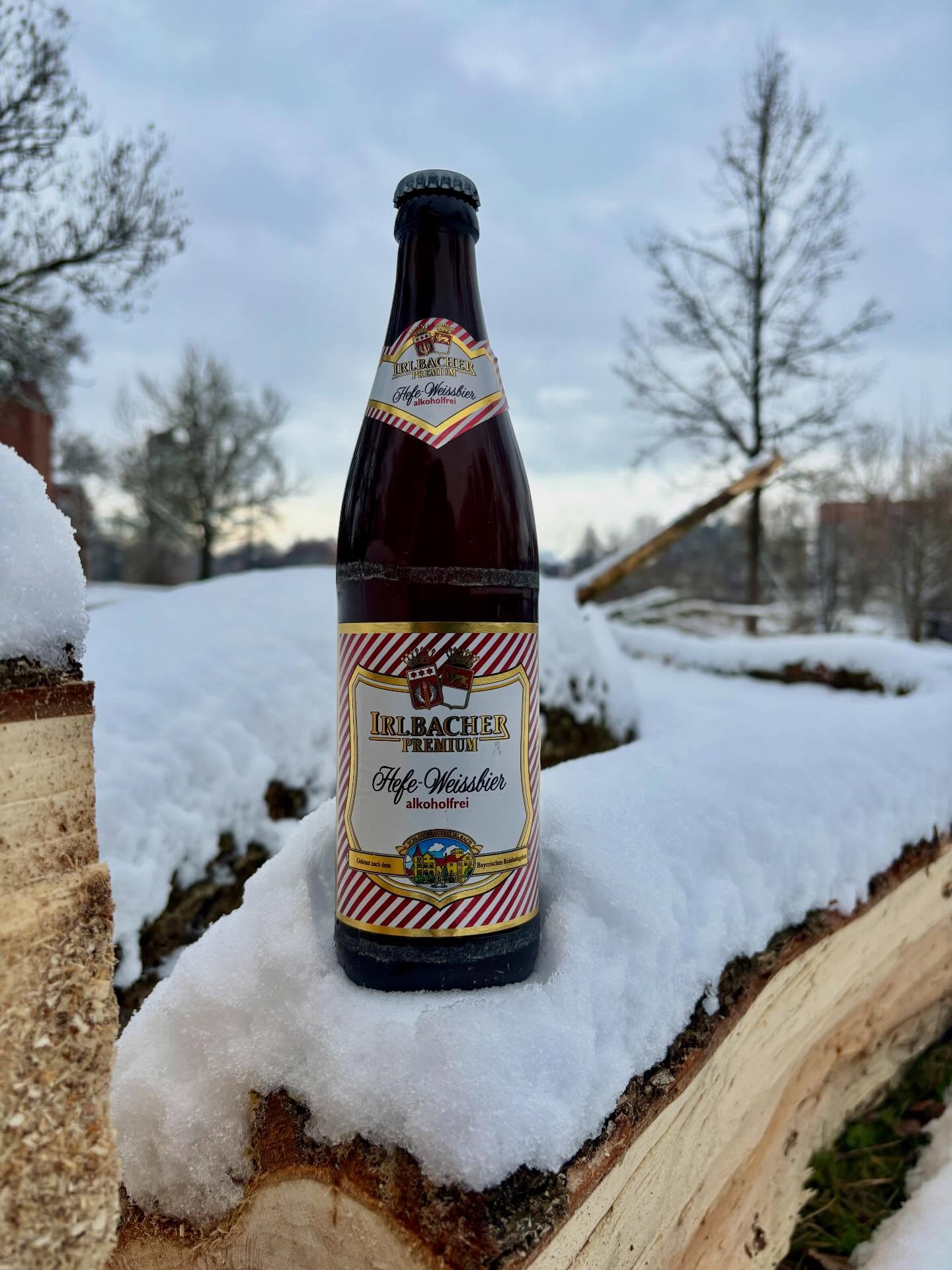 Nach den bekannten Rezepturen werden die Biere der Schlossbrauerei Irlbach heute bei Arcobräu in Moos eingebraut und die Marke Irlbacher damit am Leben gehalten. Wir schenken uns heute das Alkoholfreie Hefe Weißbier in’s Glas.