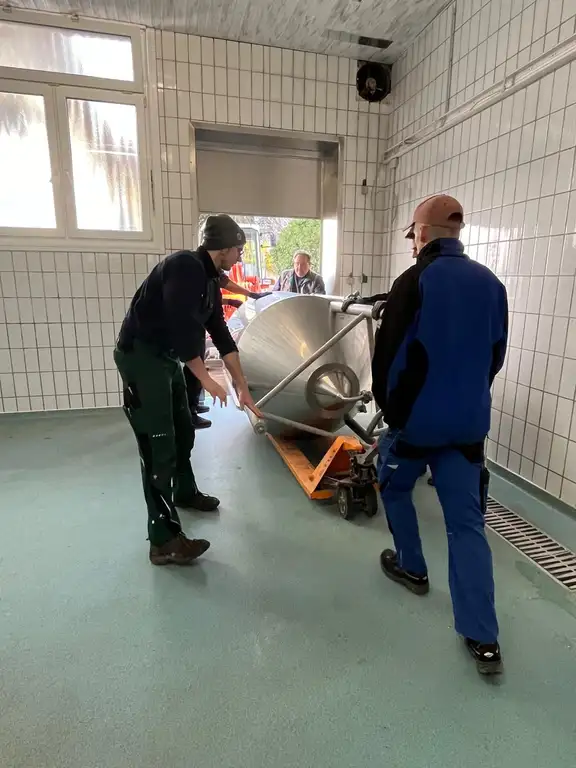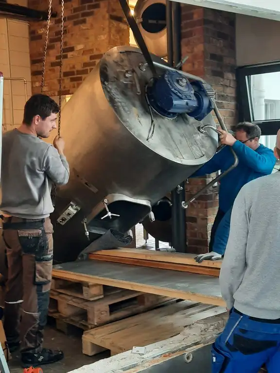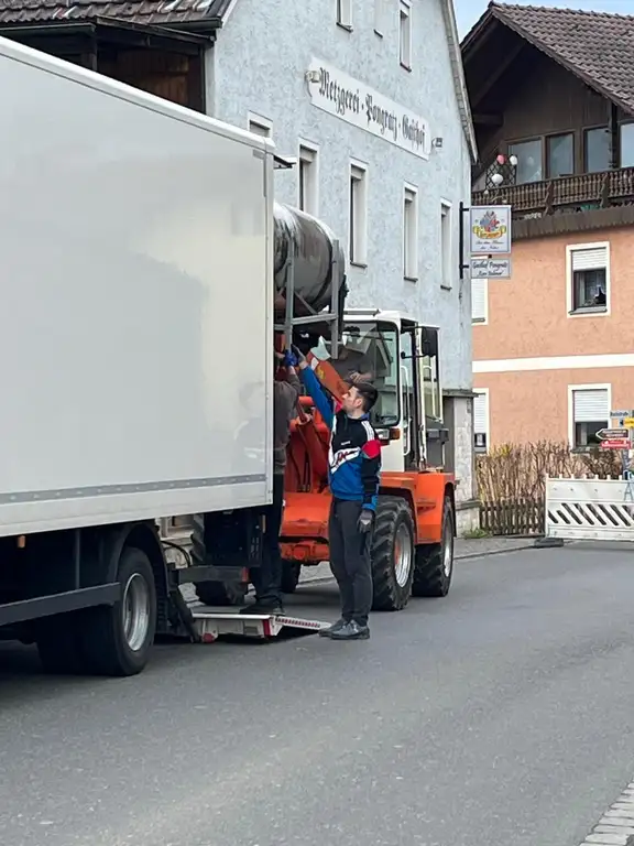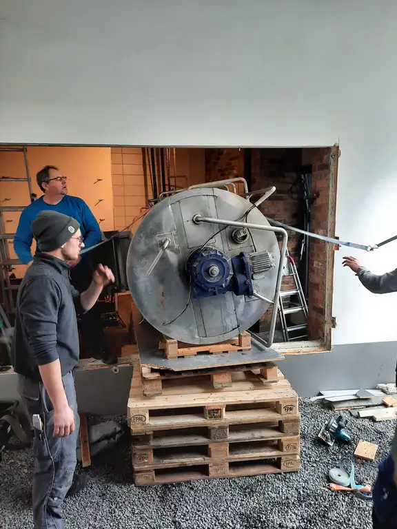 Die Technik für den Mayerbräu fand Andreas gebraucht bei einer ehemaligen Brauerei in Frankfurt am Main. Zweimal fuhr Andreas zur Planung und Besichtigung hin. Eine Woche vor Ostern – am 21. und 22. März 2024 – wurde die Anlage zusammen mit Handwerkern und Freunden nach Gleißenberg gefahren. Zurück in der Oberpfalz wurde erstmal kurzerhand die Straße in Eigenregie abgesperrt und der LKW entladen. Und das halbe Dorf hat zugeschaut. Danach dauerte es noch drei bis vier weitere Monate, bis die Anlage betriebsbereit war. Die Bayerische Bierwelt stand kurz vor dem ersten Sud vom Mayerbräu, voller Enthusiasmus startet Andreas in den Brautag, doch genau dann kam der Dämpfer: Die Heizstäbe waren defekt. Weitere acht Wochen vergingen bis der Hersteller die passenden Ersatzteile liefern konnte. Das ist bei einer gebrauchten Anlage gar nicht mal so einfach, bereits herauszufinden welches Modell der Anlage exakt beim Mayerbräu steht, musste herausgefunden werden. Doch am Ende klappte alles und es konnte endlich losgehen!