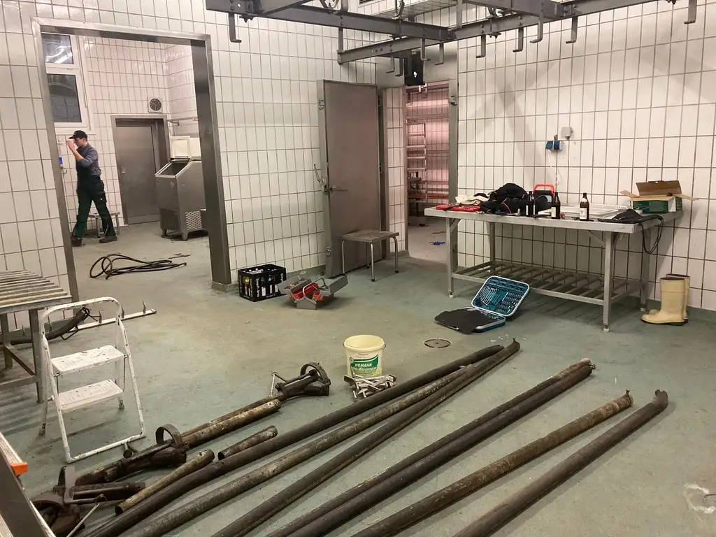 Wer eine Brauerei gründen will, braucht allerdings mehr als nur Mut und Können. Es braucht schon auch a bissl Platz. Andreas sprach den Bürgermeister von Gleißenberg an. Falls es irgendwo Leerstand gäbe soll er sich doch bitte melden. Zwei Monate später kam der Hinweis das ein Bauunternehmer aus Gleißenberg eine ehemalige Metzgerei im Ort besitzt. Grundsätzlich eigenen sich solche Metzgereigebäude hervorragend für kleine Brauereien, alles ist gefliest, im Boden gibt es Abflüsse. Andreas überlegte nicht lange, unterschrieb den Mietvertrag und zog ein. 2023 erfolgte die offizielle Firmengründung des Mayerbräu. Ende des Jahres begann der Umbau. Und der hatte es in sich. Ein Dreiviertel Jahr bis Jahr für Baustelle. Planung, Abstimmung, Handwerker, Genehmigungen und das besorgen des entsprechenden Brauequipment!